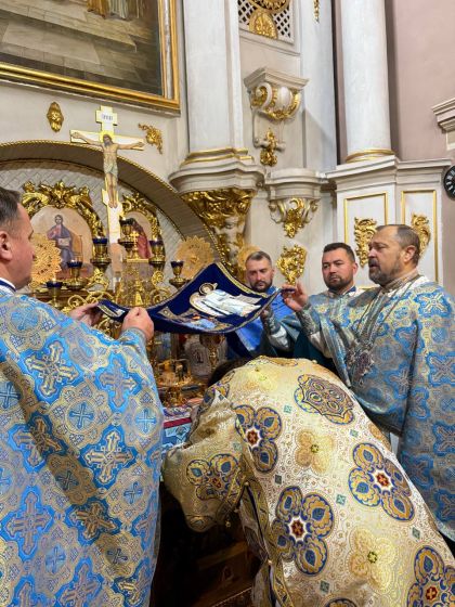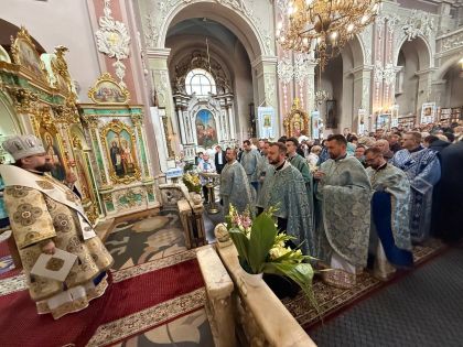 Під час богослужіння підносилися особливі молитовні прохання за воїнів, які захищають Україну, за владу та наш народ, а також за упокій душ усіх пастирів і вірних, котрі в різні часи потрудилися у Свято-Покровському кафедральному соборі.