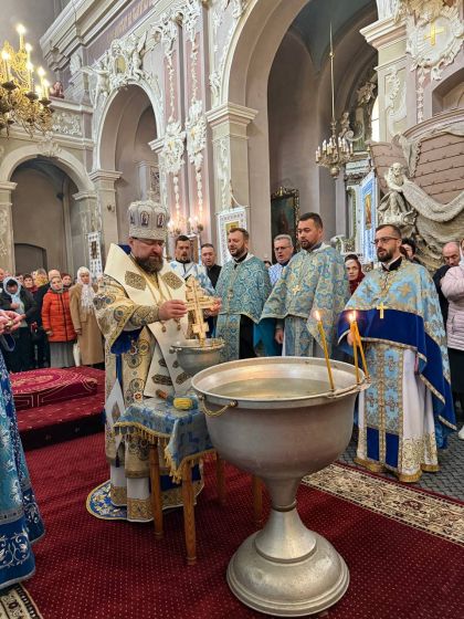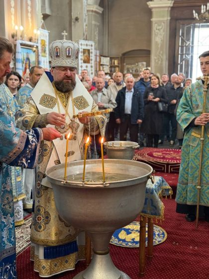 Насамкінець митрополит Димитрій у співслужінні духовенства звершив чин освячення води, після чого благословив усіх присутніх окропленням святої води.