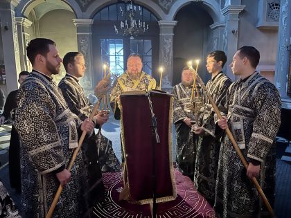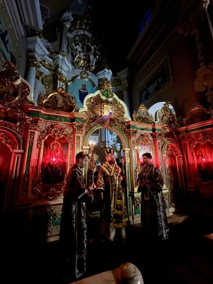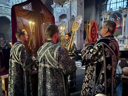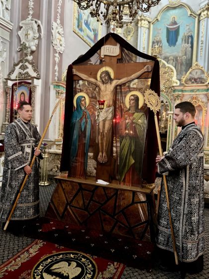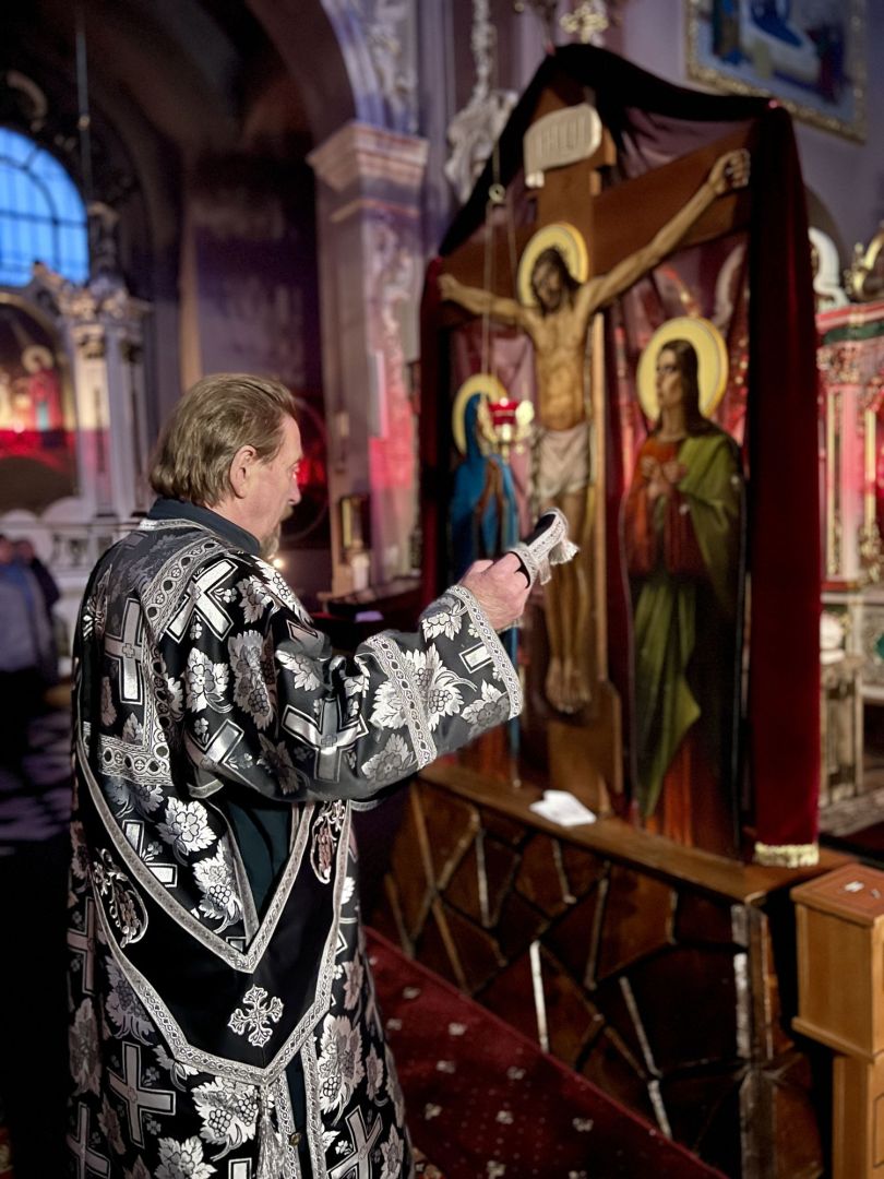 Під час богослужіння була прочитана 27-ма глава Євангелія від євангеліста Матфея, в якій розповідається про події останніх годин земного життя Спасителя: суд у прокуратора, смертний вирок, знущання воїнів, шлях на Голгофу, розп'яття і смерть.