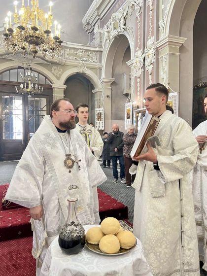 Після відпусту Літургії митрополит Димитрій звершив благословення хлібів і вина - поживи, яка благословляється вірним для вжитку задля підкріплення тілесних сил в день, коли Церквою встановлено суворий піст.
