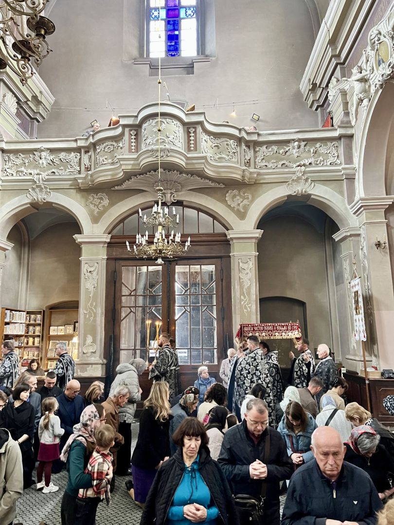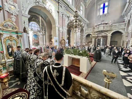 18 квітня 2025 року, в п'ятницю Страсної седмиці, день спомину Святих і спасительних Страстей Господа нашого Ісуса Христа, вранці, митрополит Львівський і Сокальський Димитрій звершив Вечірню з виносом Плащаниці на храм в кафедральному соборі Покрова Пресвятої Богородиці м. Львова.