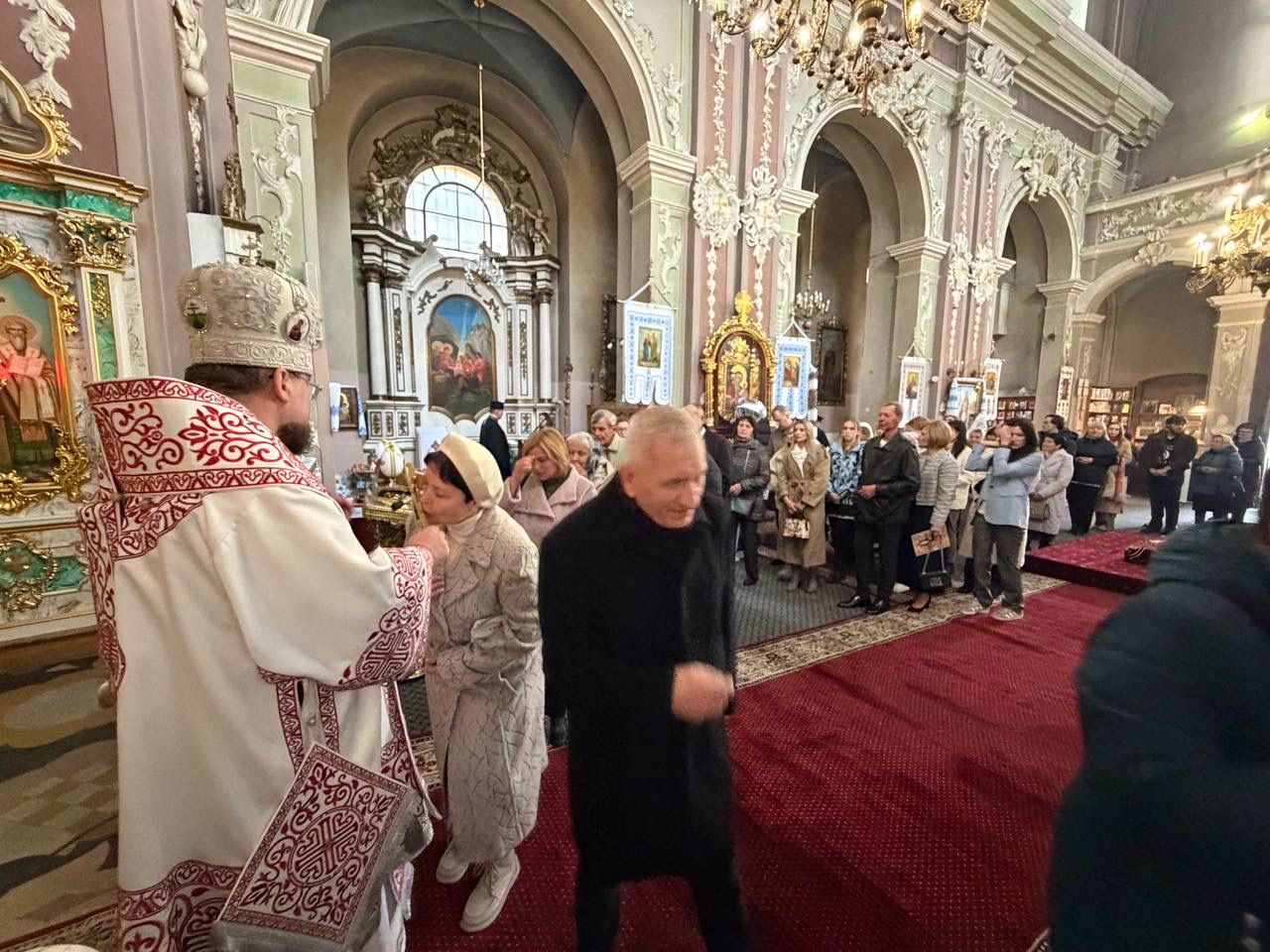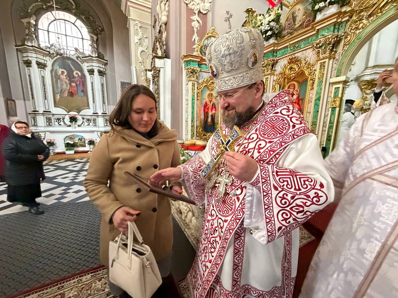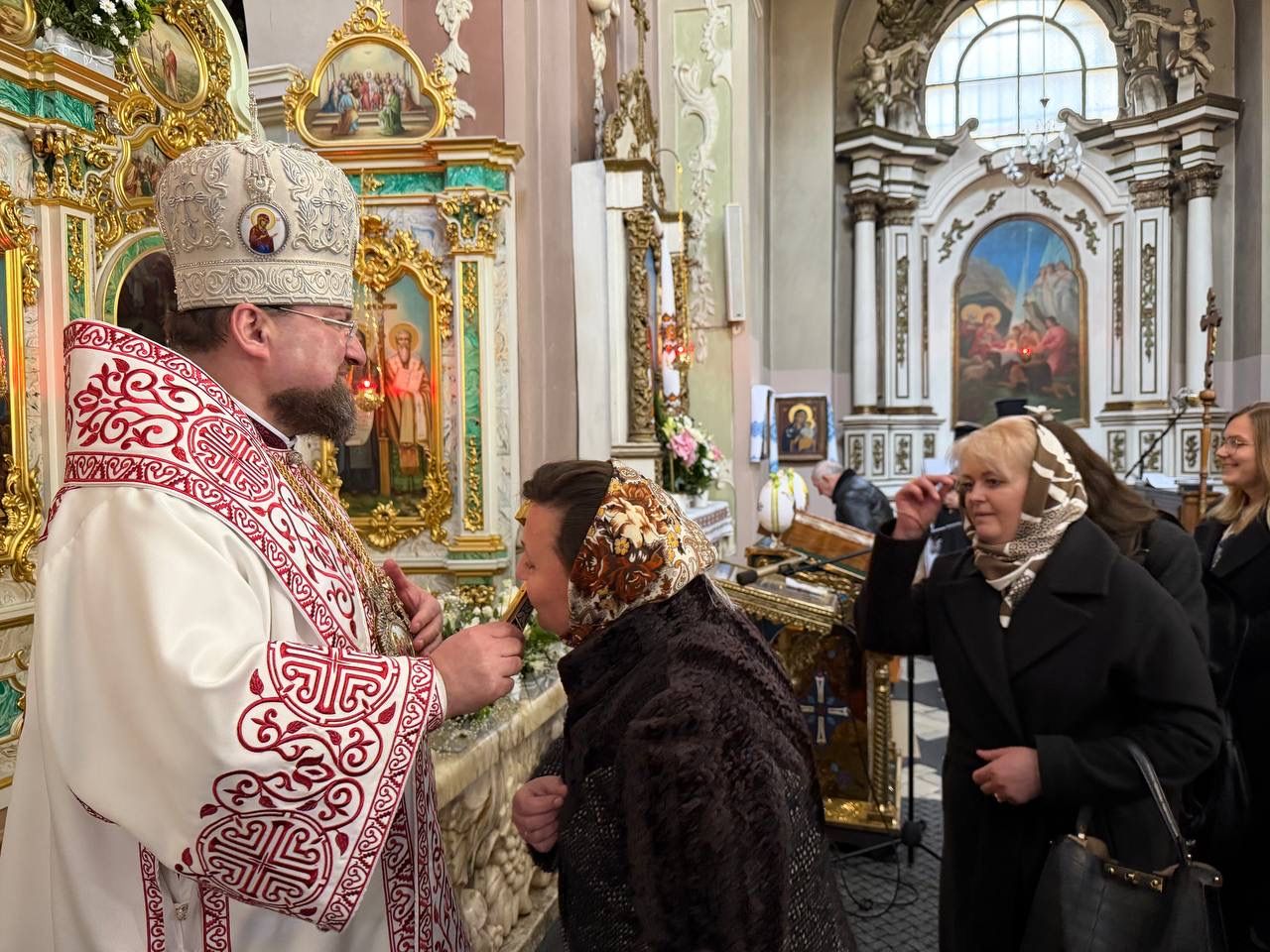На завершення митрополит Димитрій подав всім присутнім у храмі для цілування напрестольний хрест, приймаючи вітання зі Святою Пасхою та вітаючи всіх радісними словами "Христос Воскрес!".
