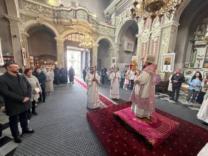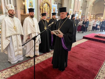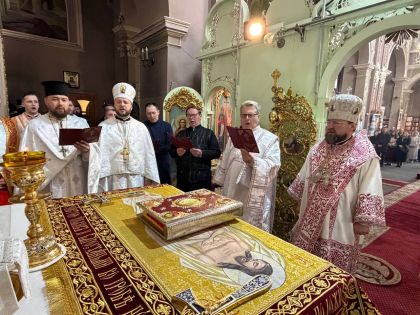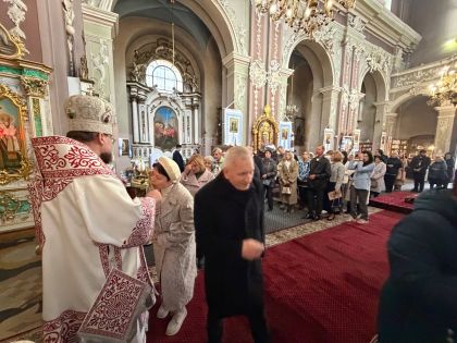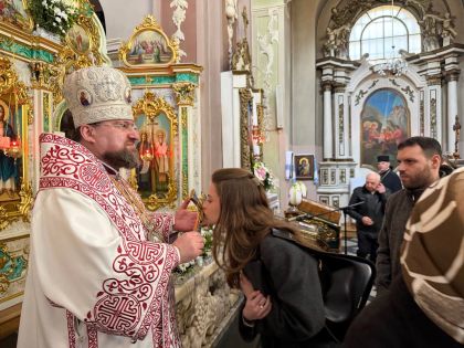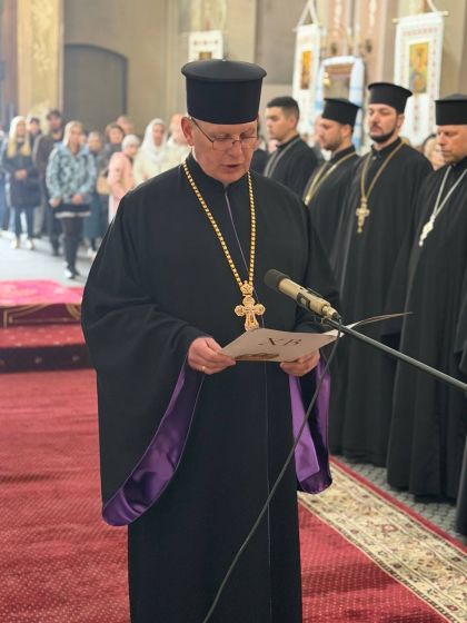 Після відпусту вечірні з вітальними словами від імені духовенства до керуючого єпархією звернувся сотрудник Свято-Покровського храму на Левандівці, протоієрей Ігор Кашицький.