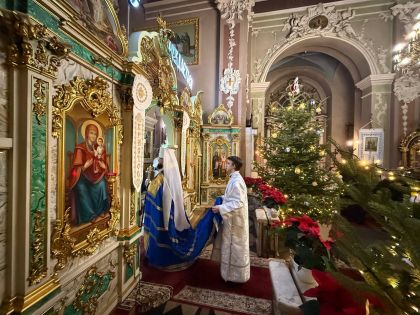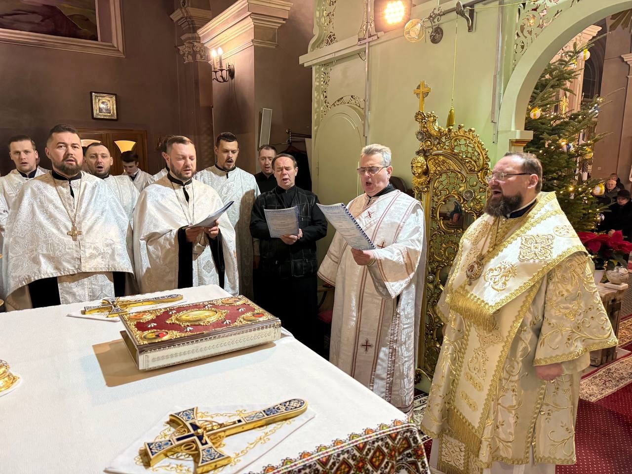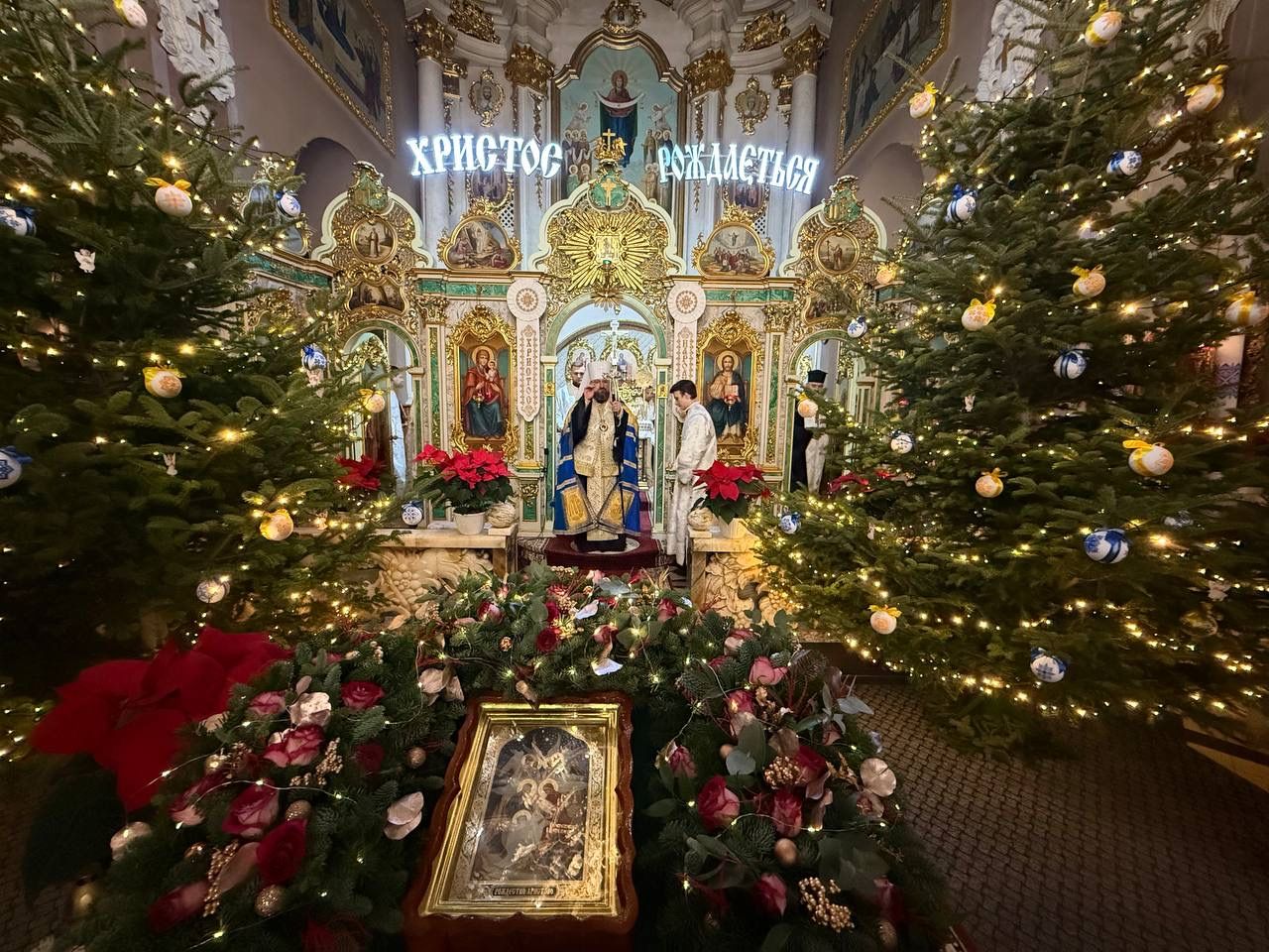 На завершення вечірнього богослужіння керуючий єпархією разом з духовенством проспівав декілька традиційних українських народних колядок, звеличуючи втілення Спасителя.