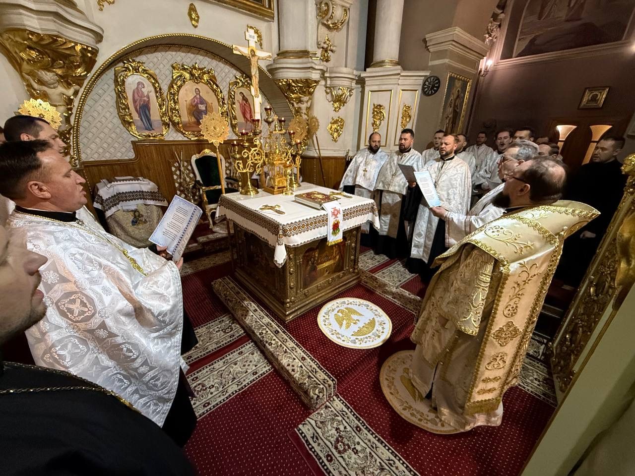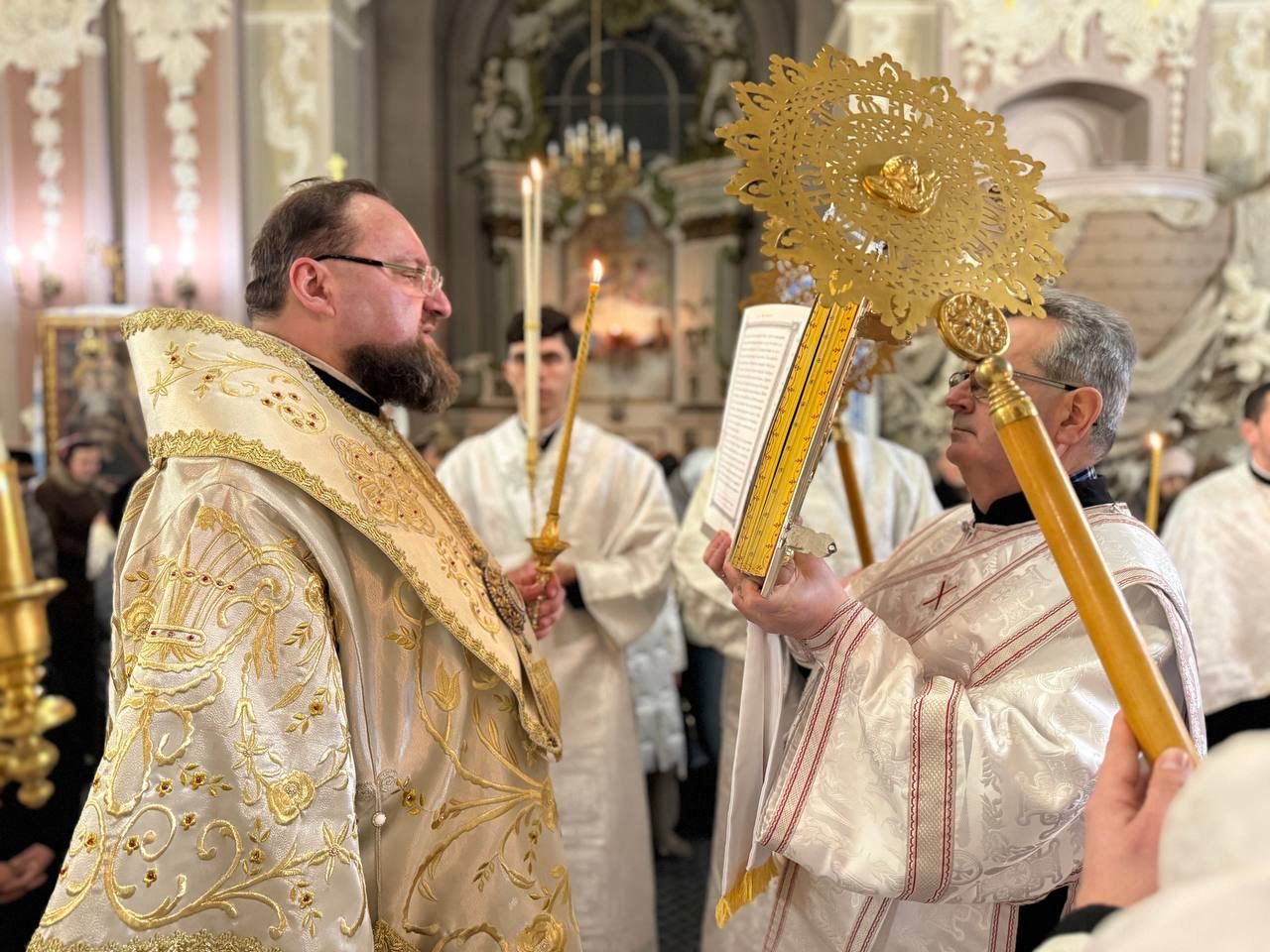 За святковим богослужінням Архіпастирю співслужили: ключар кафедрального собору, ректор ЛПБА, протоієрей Михайло Сивак; економ єпархіального управління; протоієрей Михайло Довгий; протоієрей Артемій Бабленюк; ієрей Іван Сподар, а також інші клірики собору та єпархії.