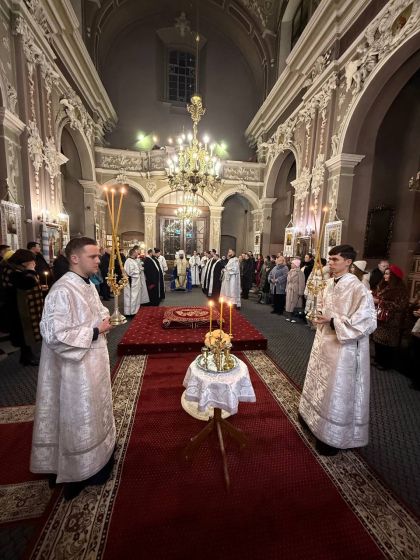 24 грудня 2025 року, напередодні свята Різдва Господа Бога і Спаса нашого Ісуса Христа, ввечері, митрополит Львівський і Сокальський Димитрій звершив святкове Всенічне бдіння - Велике Повечір'я та Ранню в кафедральному соборі Покрова Пресвятої Богородиці м. Львова.