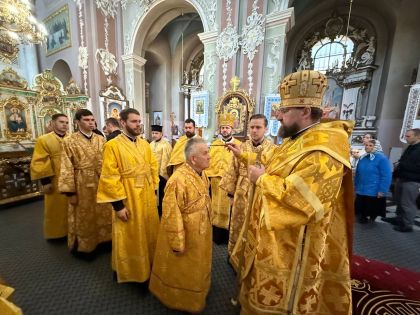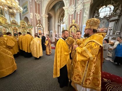 За всенічною відправою Архіпастирю співслужили клірики собору та єпархії.