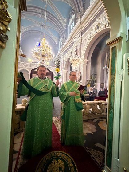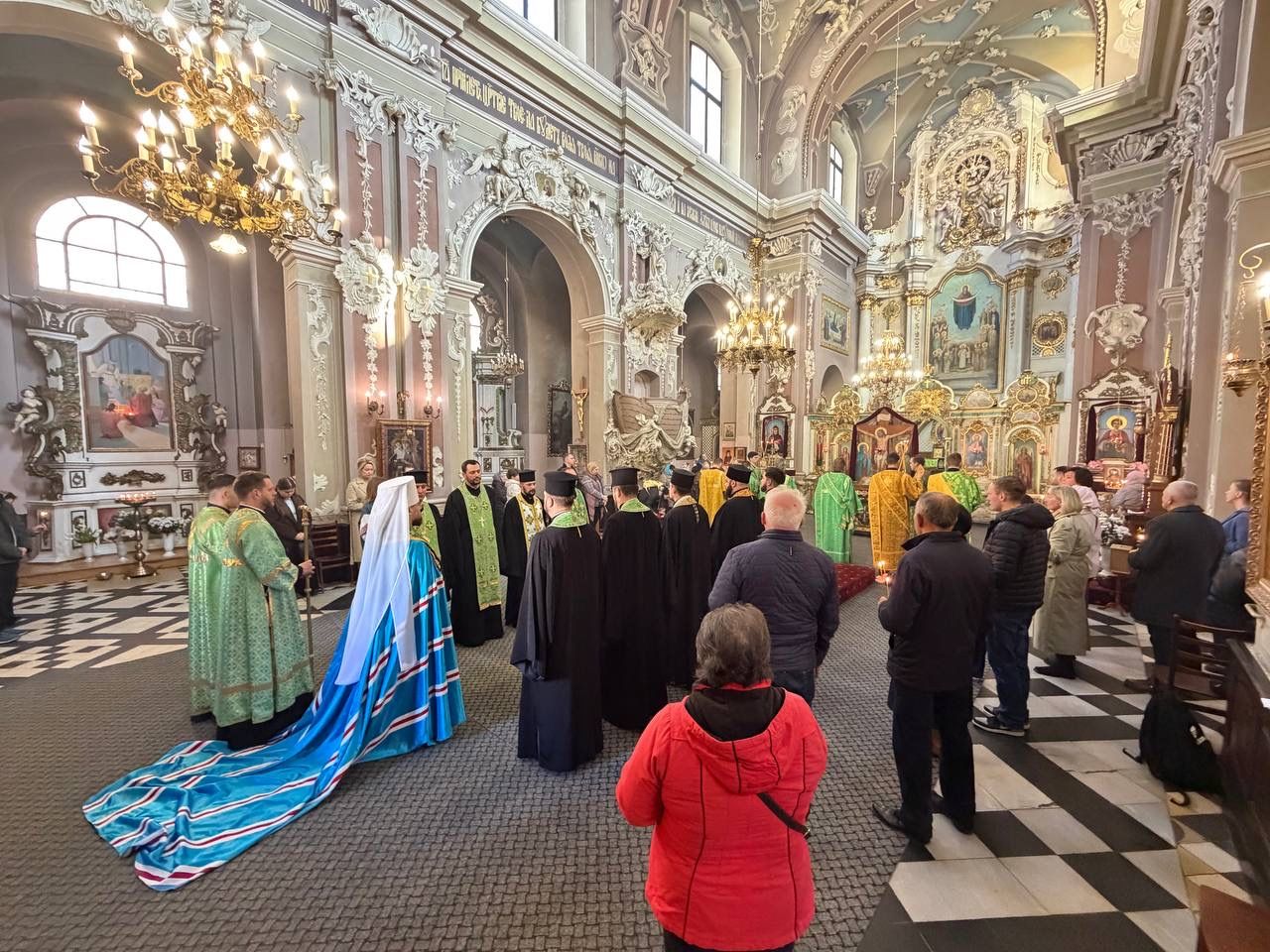 4 квітня 2026 року, напередодні неділі 6-ої Великого посту, ваїй, цвітоносної, вербної, свята Входу Господнього у Єрусалим, митрополит Львівський і Сокальський Димитрій звершив Всенічне бдіння у Свято-Покровському кафедральному Соборі м. Львова.