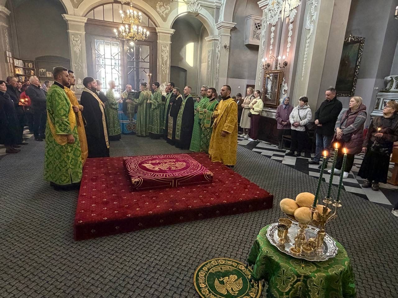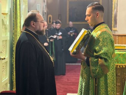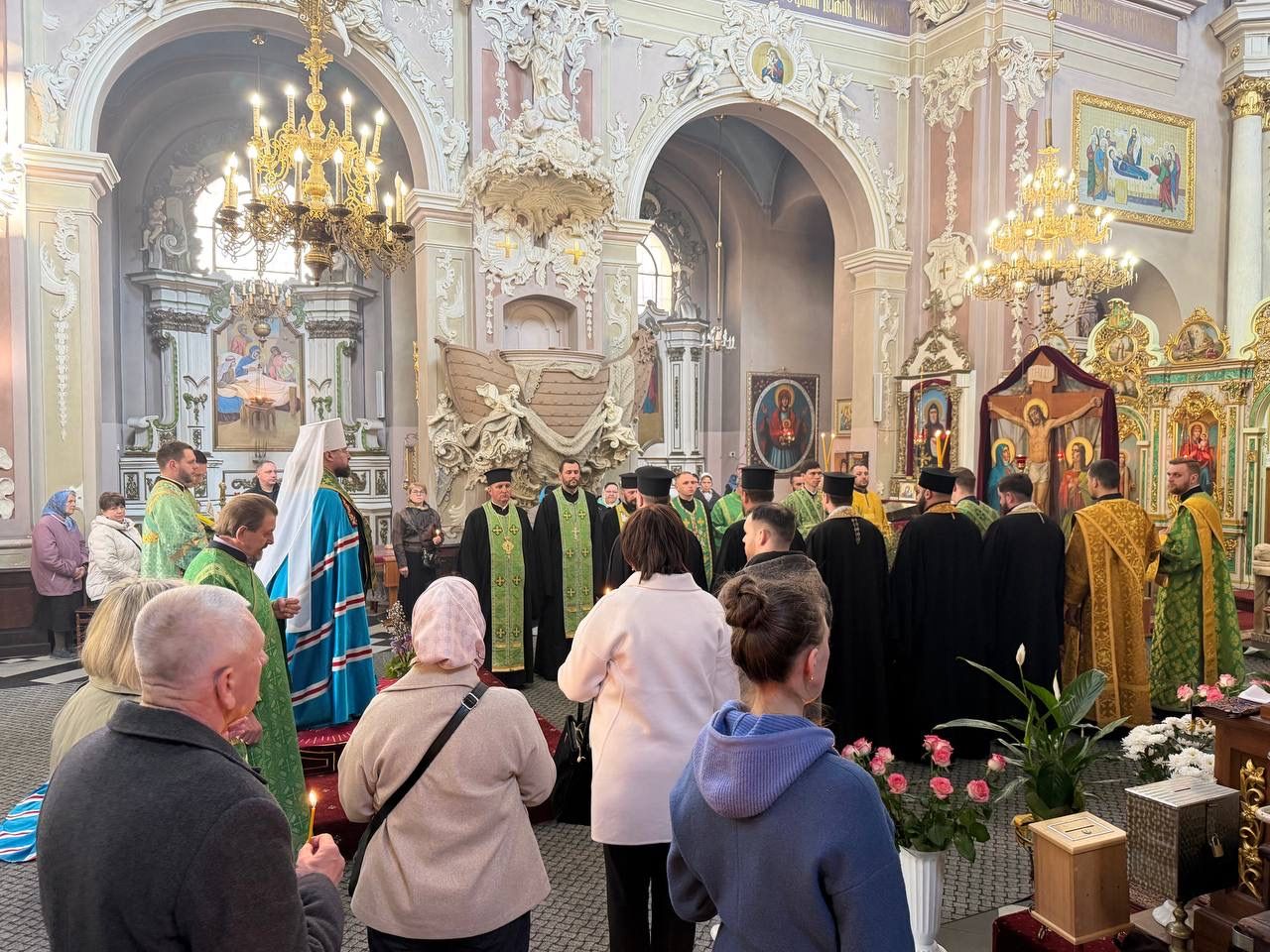 За вечірнім богослужінням Владиці співслужили клірики собору та єпархії.