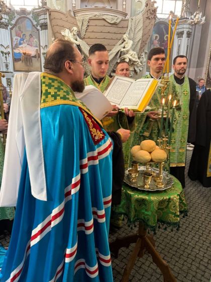 Під час вечірні було звершено літію, за якою Архіпастир підніс молитву на благословення хлібів, пшениці, вина та єлею.