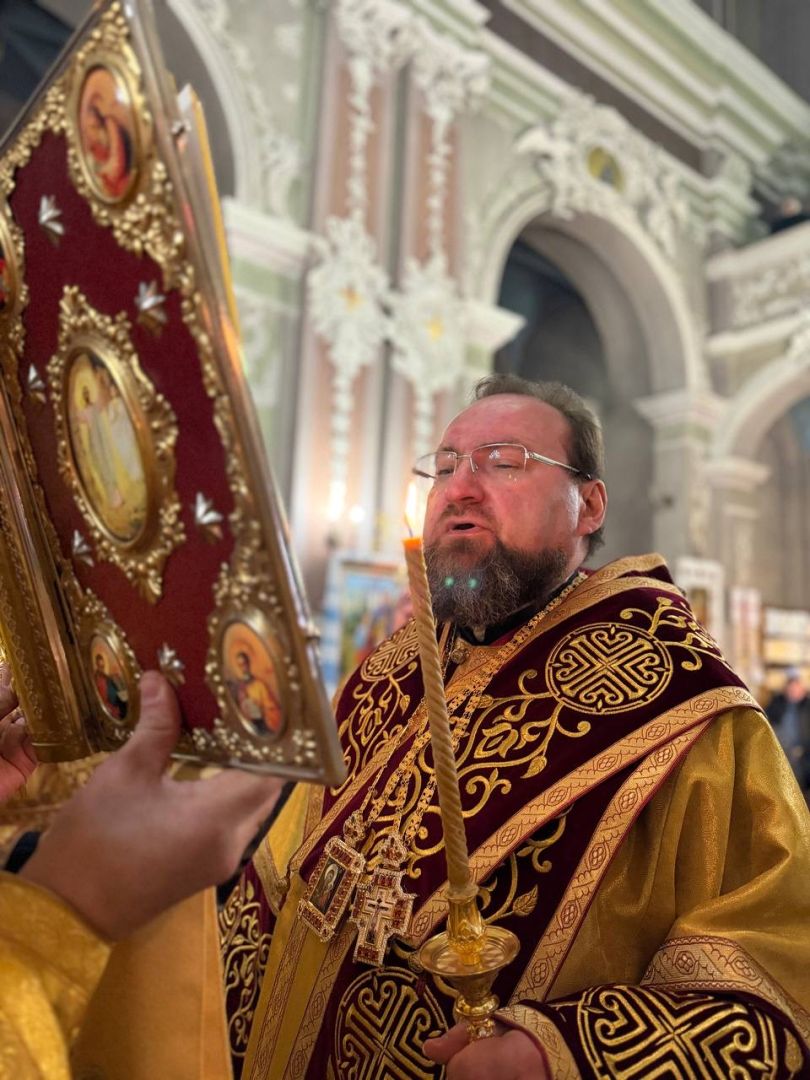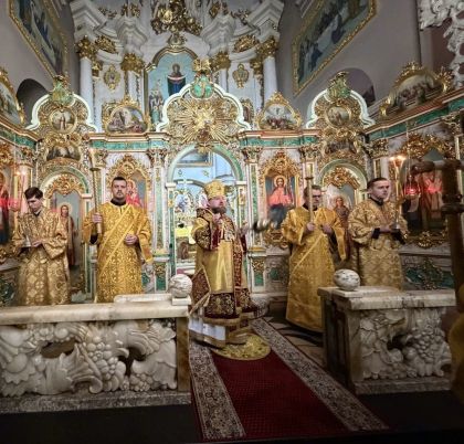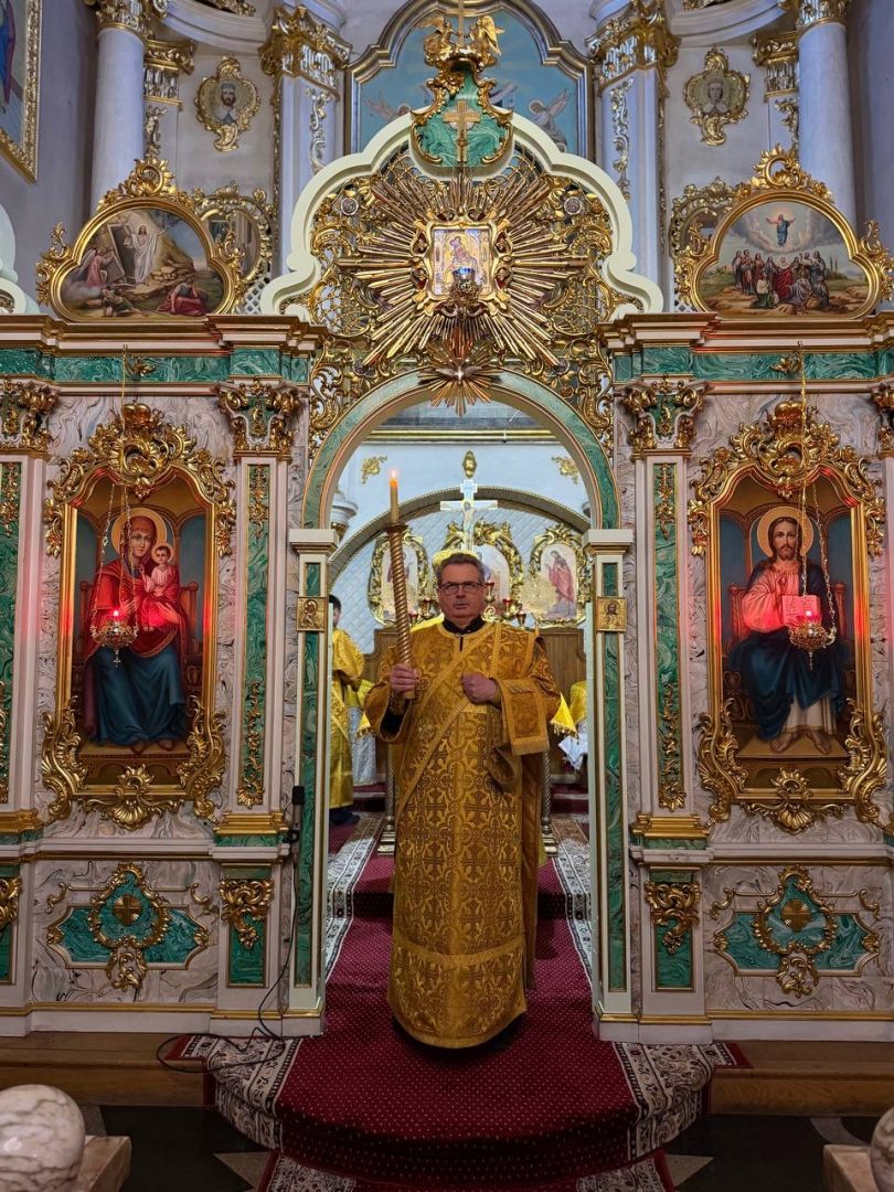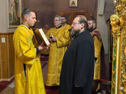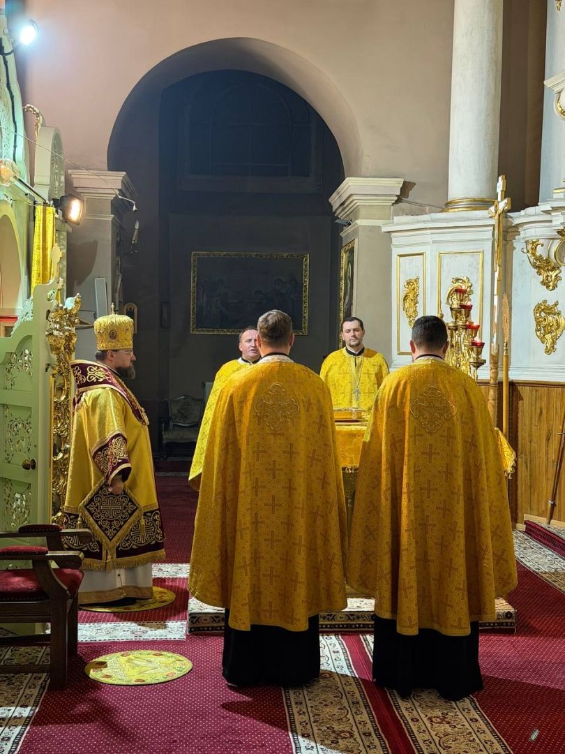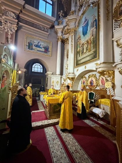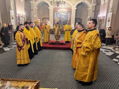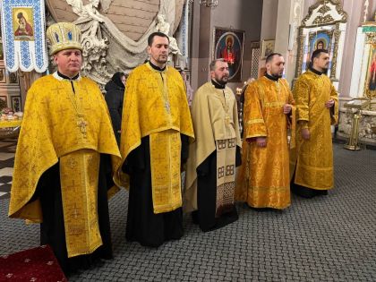 За всенічним бдінням Архієрею співслужили клірики собору та єпархії.