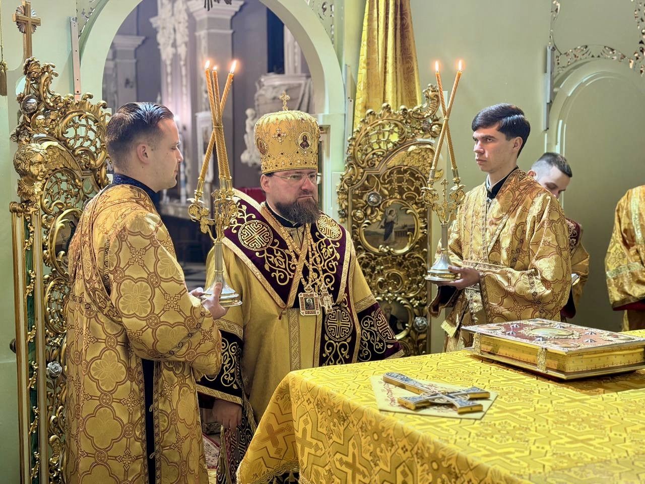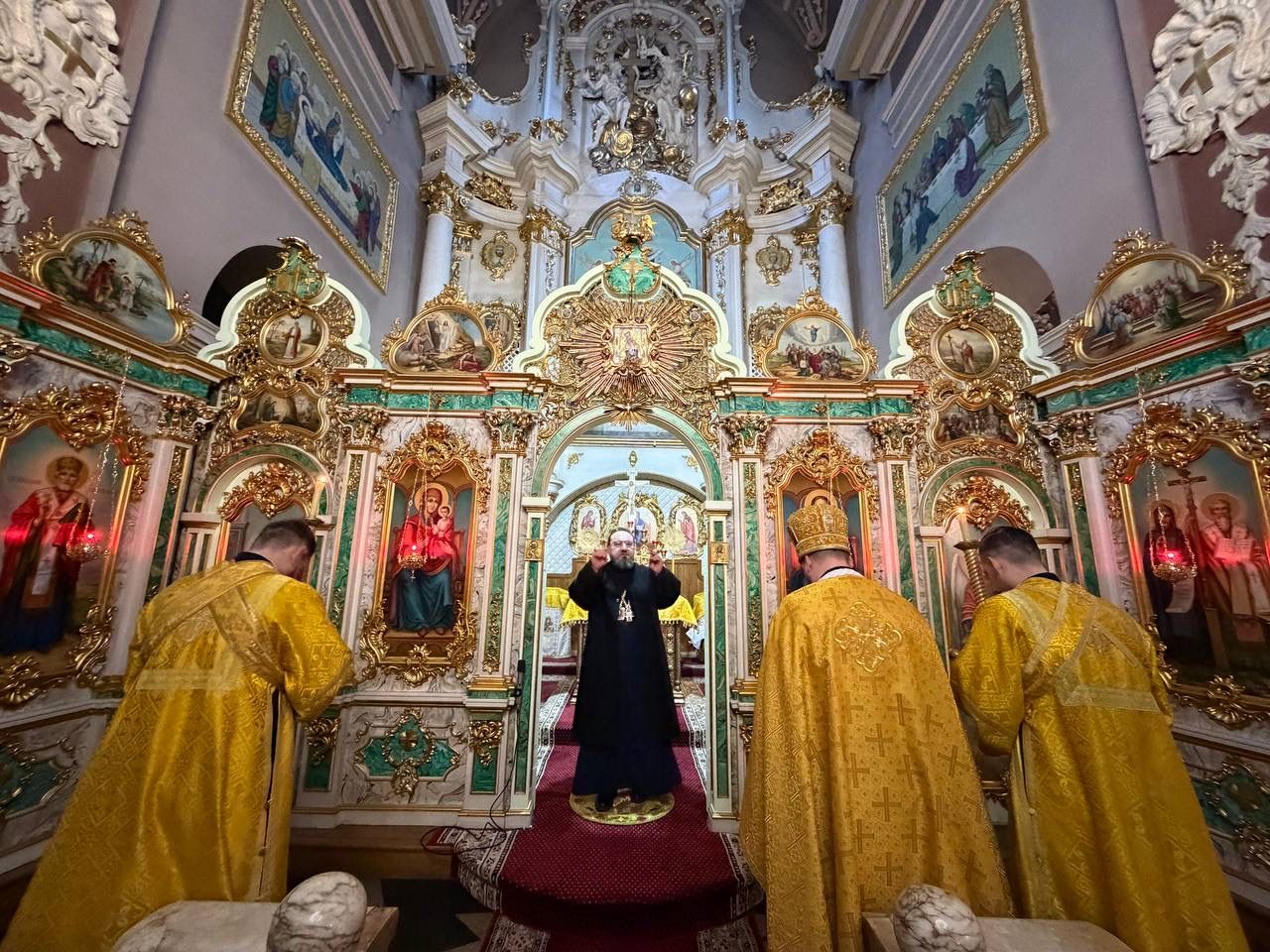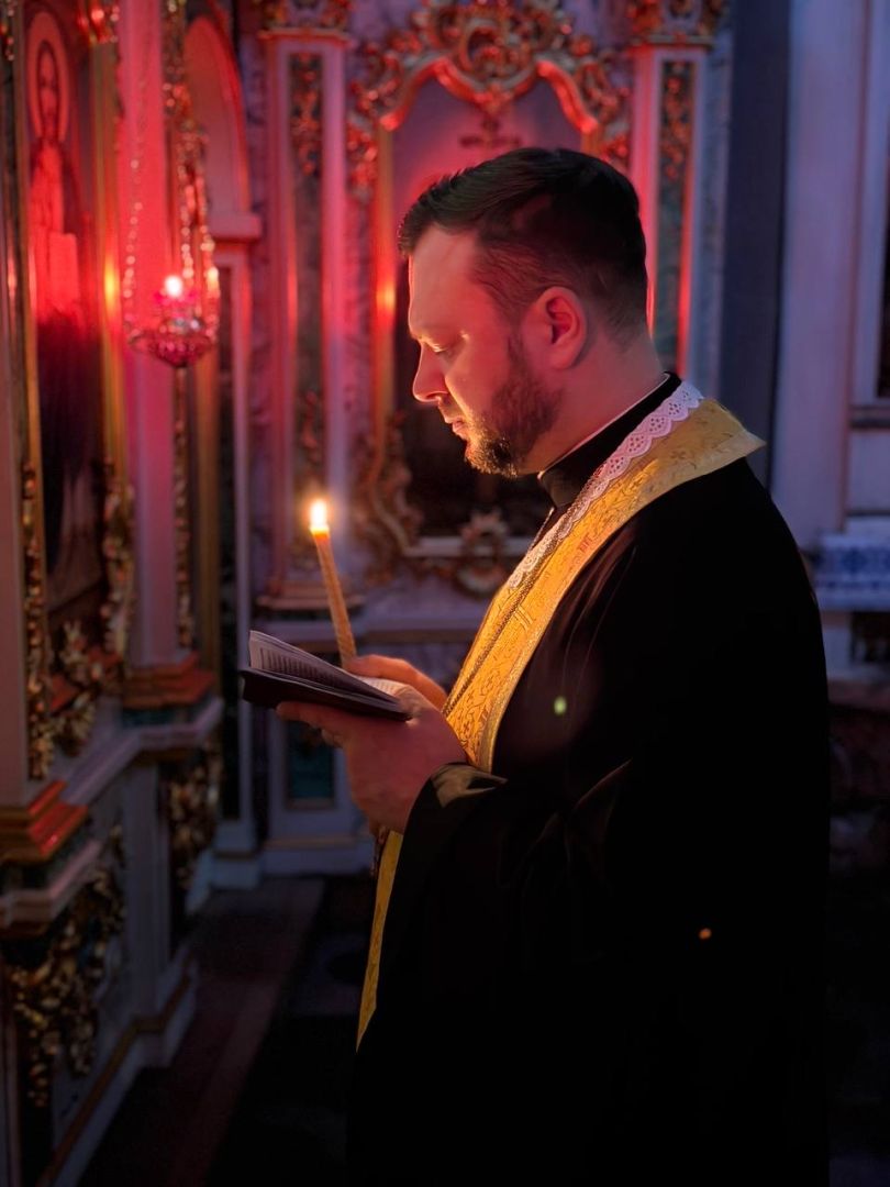 За всенічним бдінням Архієрею співслужили клірики собору та єпархії.