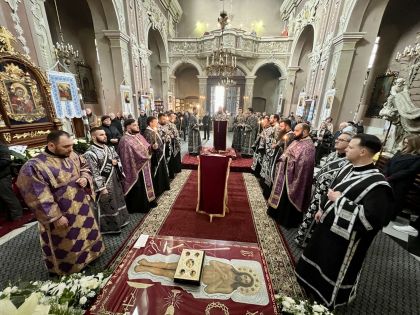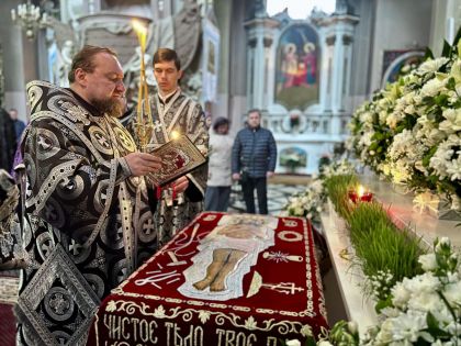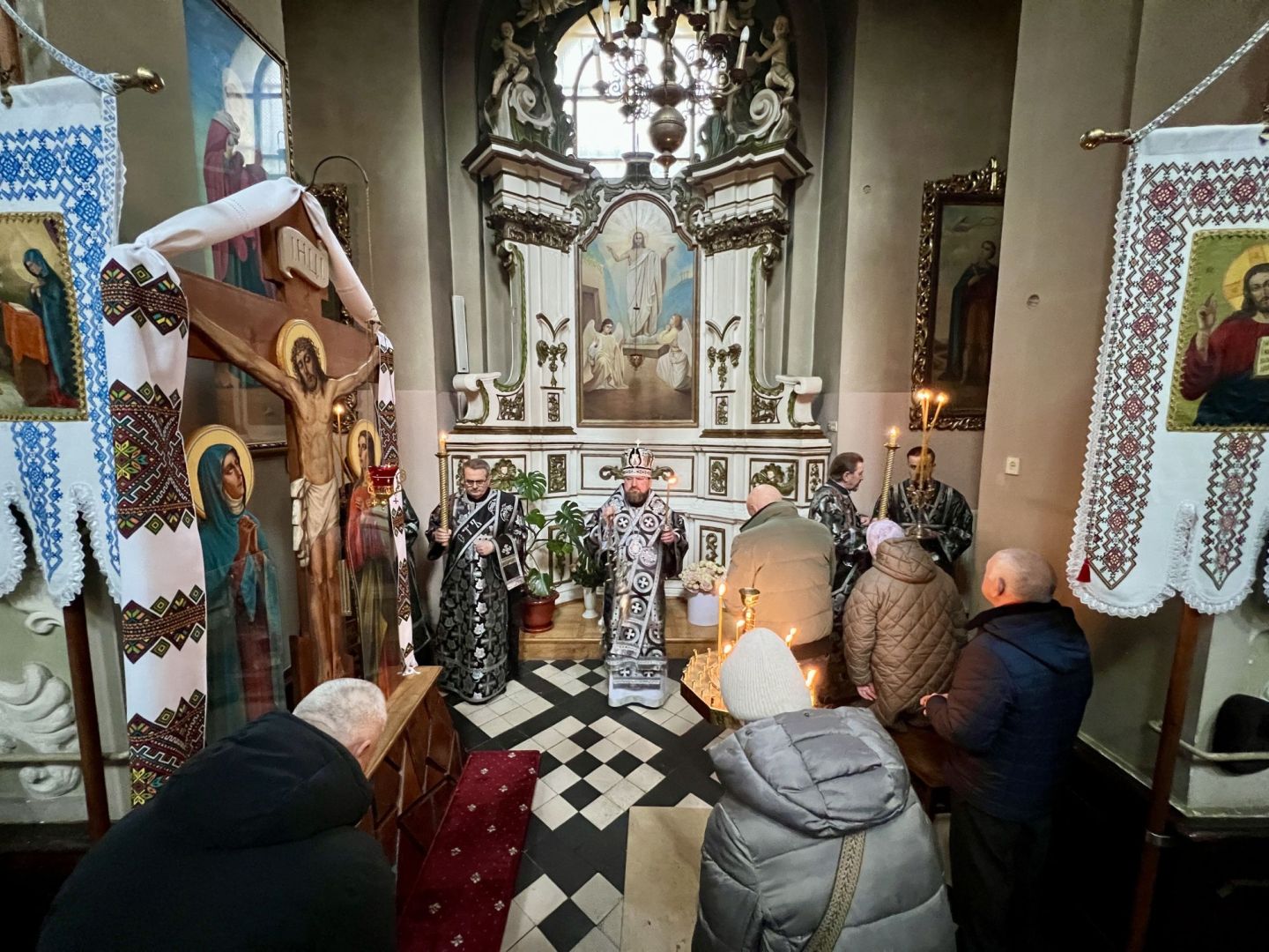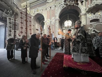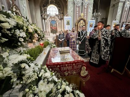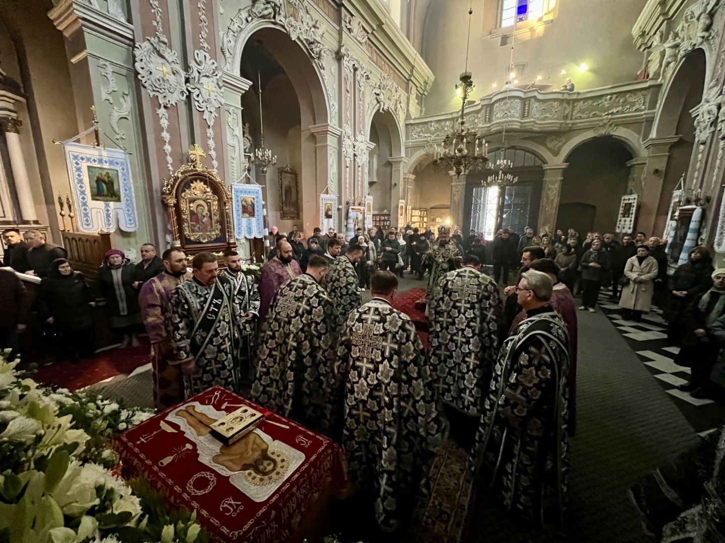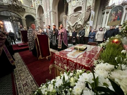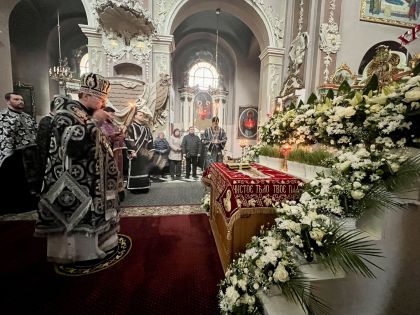 Завершуючи богослужіння, Архіпастир звершив читання Святого Євангелія, після чого присутні з благоговінням вклонилися Святій Плащаниці Господній.
