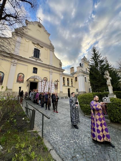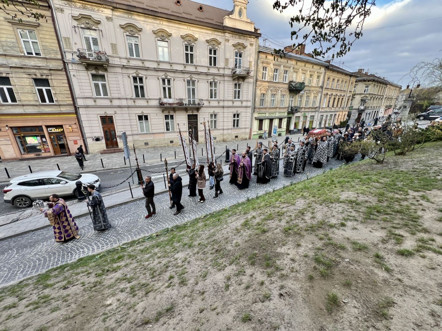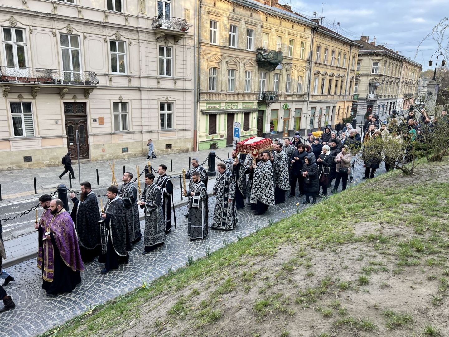 Після триразового кадіння гробу з Плащаницею духовенство та віряни, під спів Трисвятого, звершили хресний хід церковним подвір’ям.