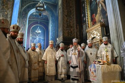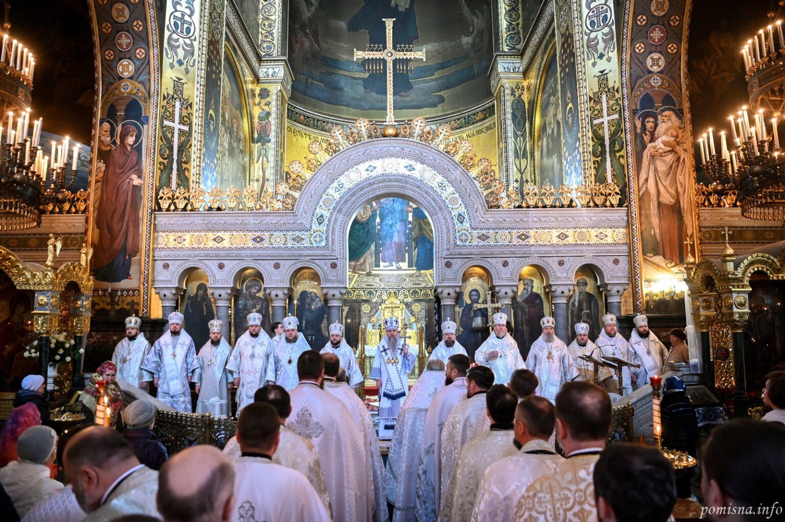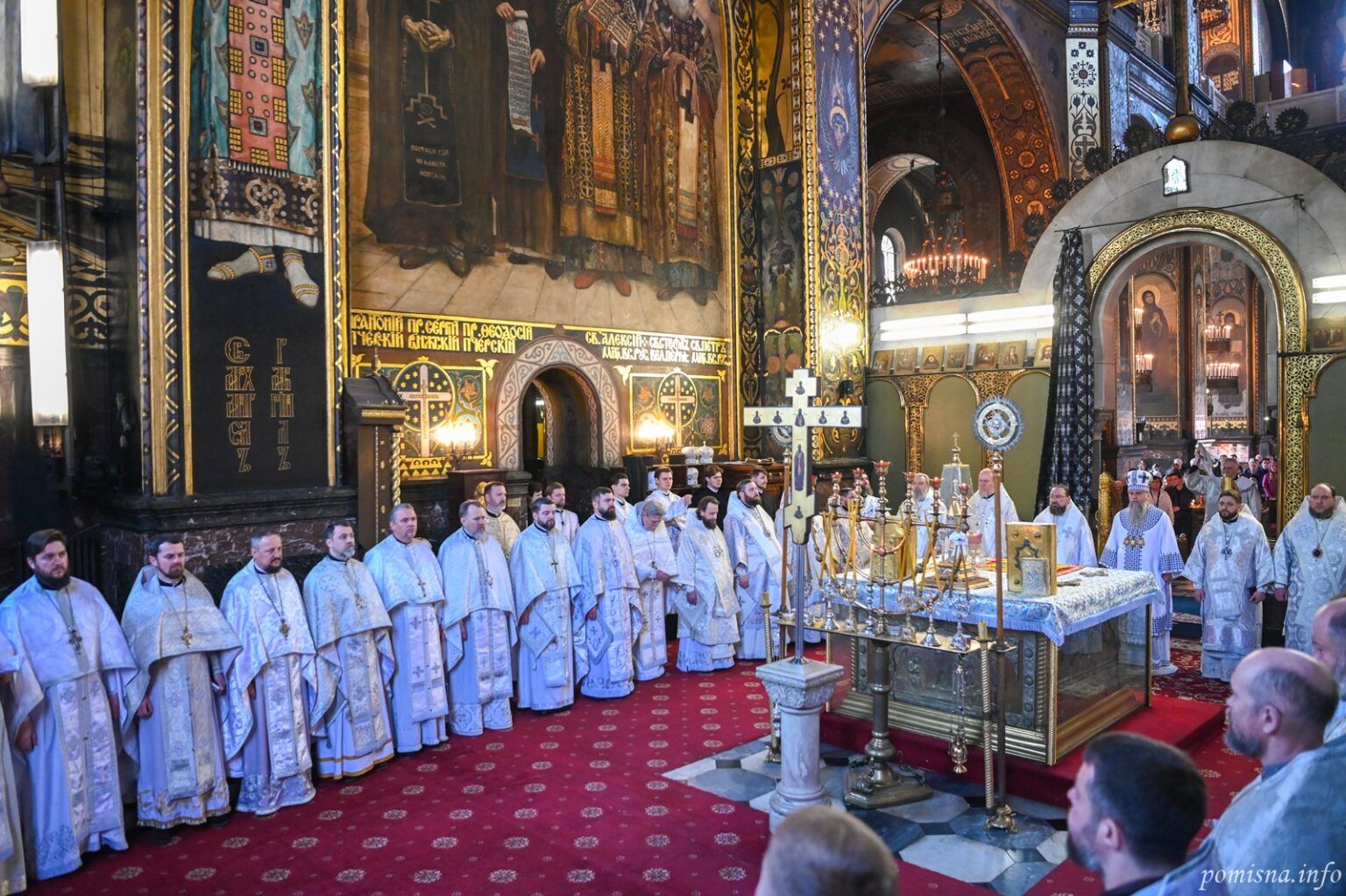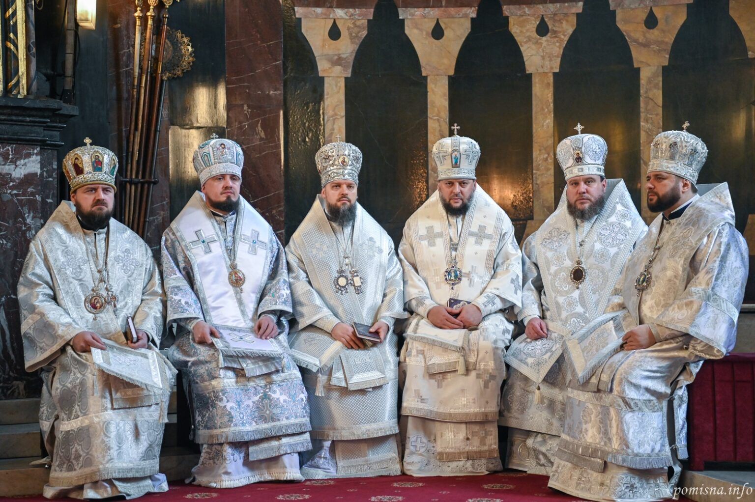 Предстоятелю Православної Церкви України співслужили митрополит Львівський і Сокальський Димитрій, митрополит Рівненський і Острозький Іларіон, митрополит Білоцерківський Євстратій, митрополит Дніпровський і Січеславський Симеон, архієпископ Луганський і Старобільський Лаврентій, архієпископ Житомирський і Поліський Володимир, архієпископ Тернопільський і Бучацький Тихон, архієпископ Вишгородський Агапіт, єпископ Запорізький і Мелітопольський Фотій, єпископ Житомирський і Овруцький Паїсій, єпископ Васильківський Єфрем, єпископ Богуславський Арсеній, єпископ Бориспільський Авраамій, настоятель – протоієрей Борис Табачек і клірики собору та численне запрошене духовенство.