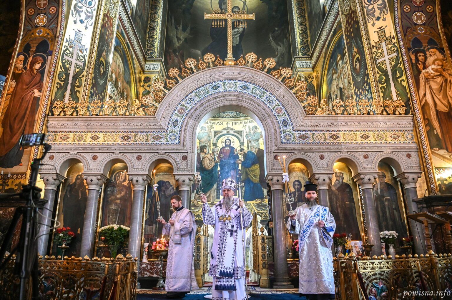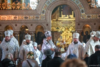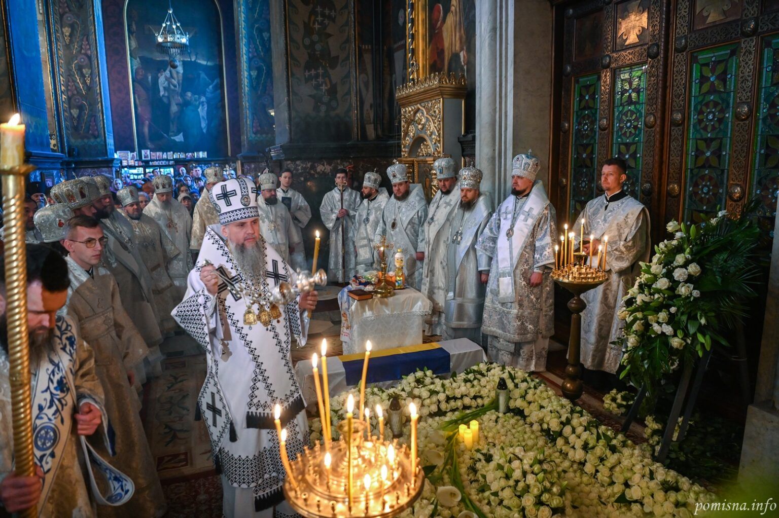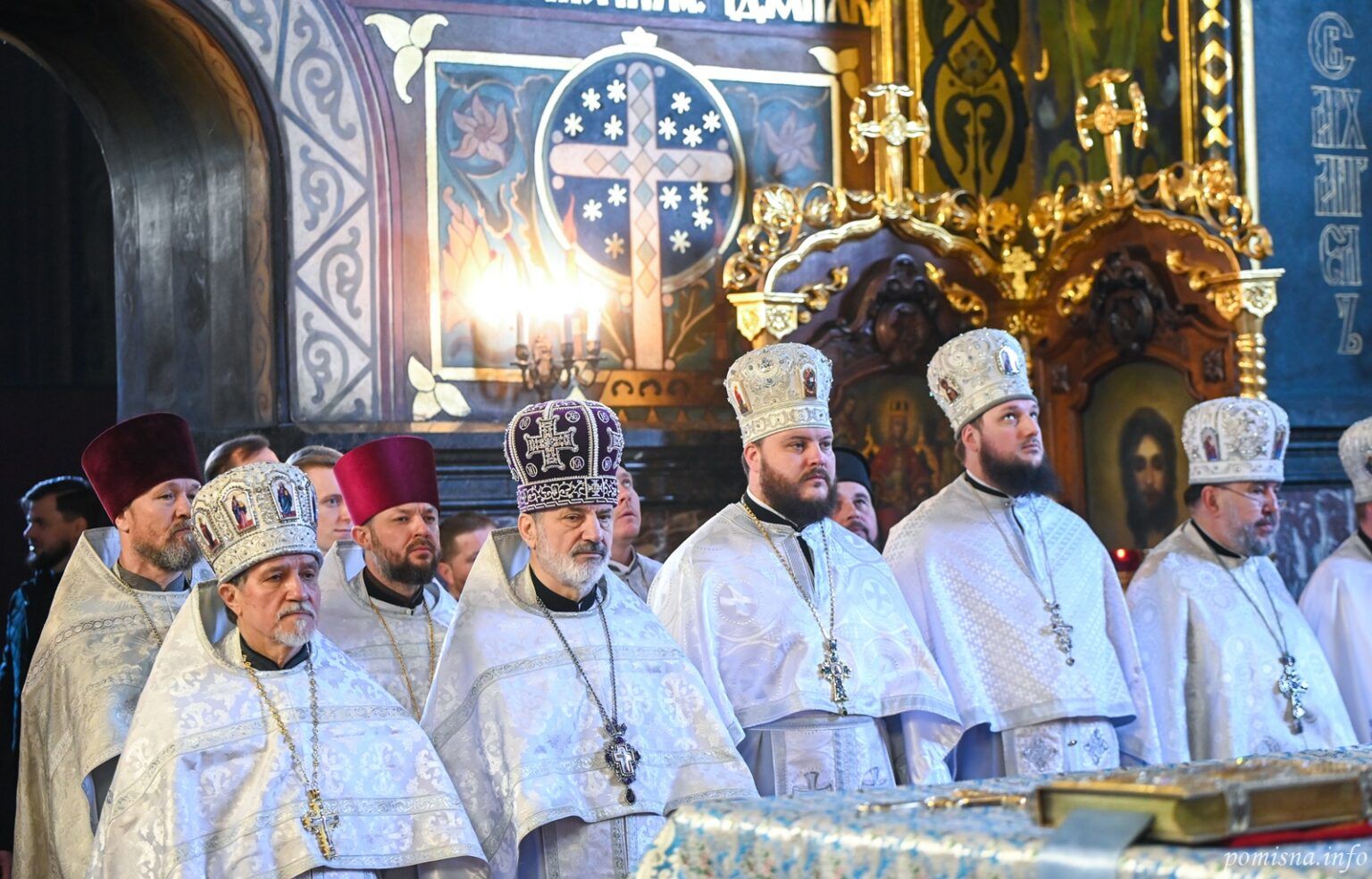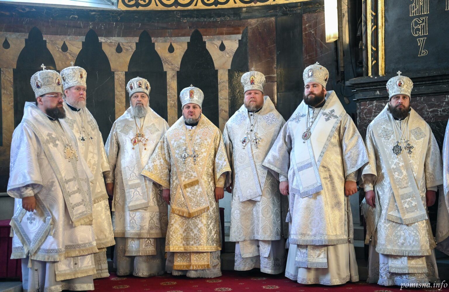 Предстоятелю Православної Церкви України співслужили митрополит Львівський і Сокальський Димитрій, митрополит Рівненський і Острозький Іларіон, митрополит Білоцерківський Євстратій, митрополит Дніпровський і Січеславський Симеон, архієпископ Луганський і Старобільський Лаврентій, архієпископ Житомирський і Поліський Володимир, архієпископ Тернопільський і Бучацький Тихон, архієпископ Вишгородський Агапіт, єпископ Запорізький і Мелітопольський Фотій, єпископ Житомирський і Овруцький Паїсій, єпископ Васильківський Єфрем, єпископ Богуславський Арсеній, єпископ Бориспільський Авраамій, настоятель – протоієрей Борис Табачек і клірики собору та численне запрошене духовенство.