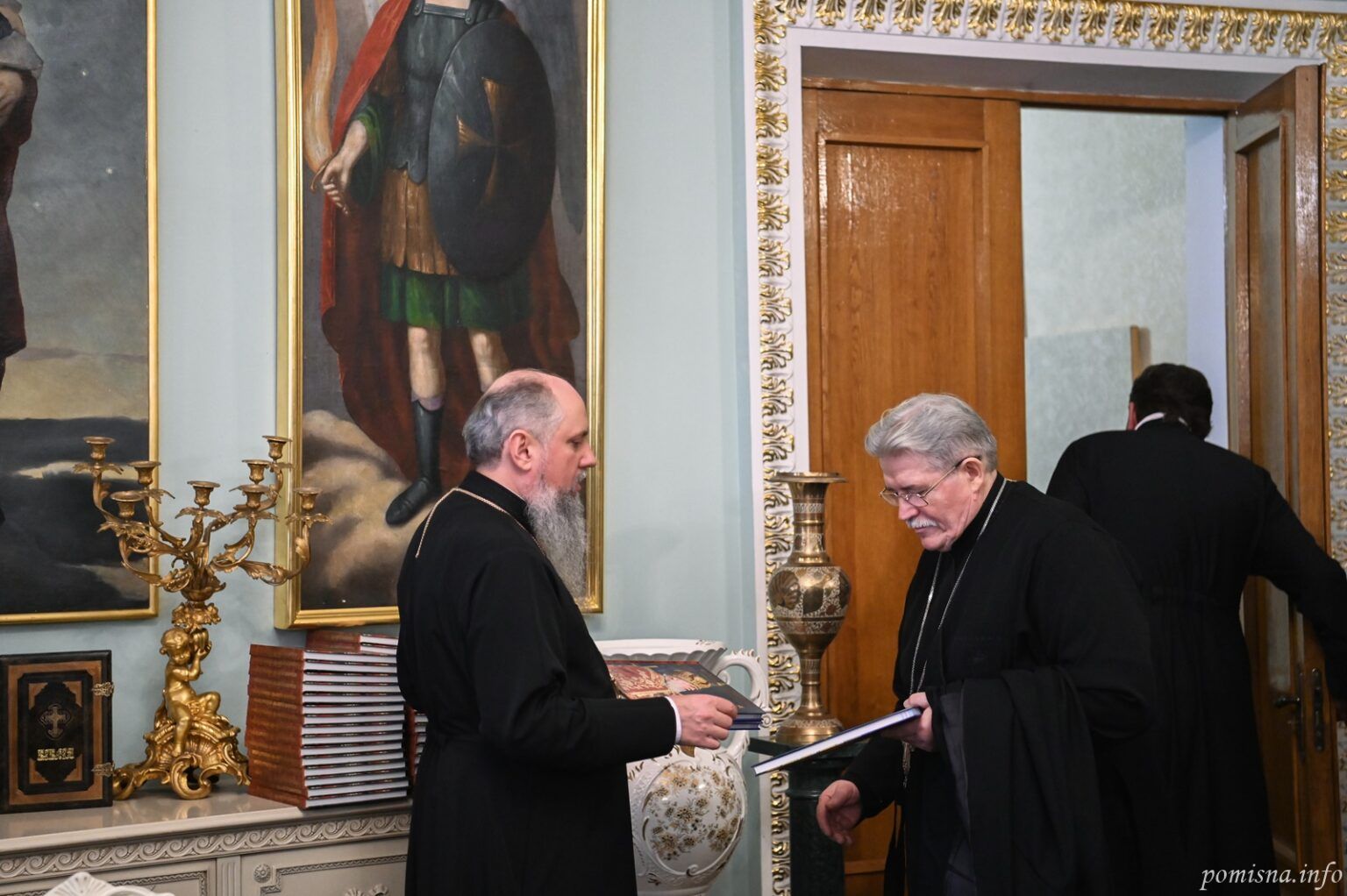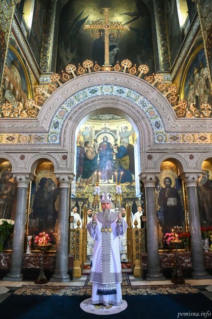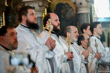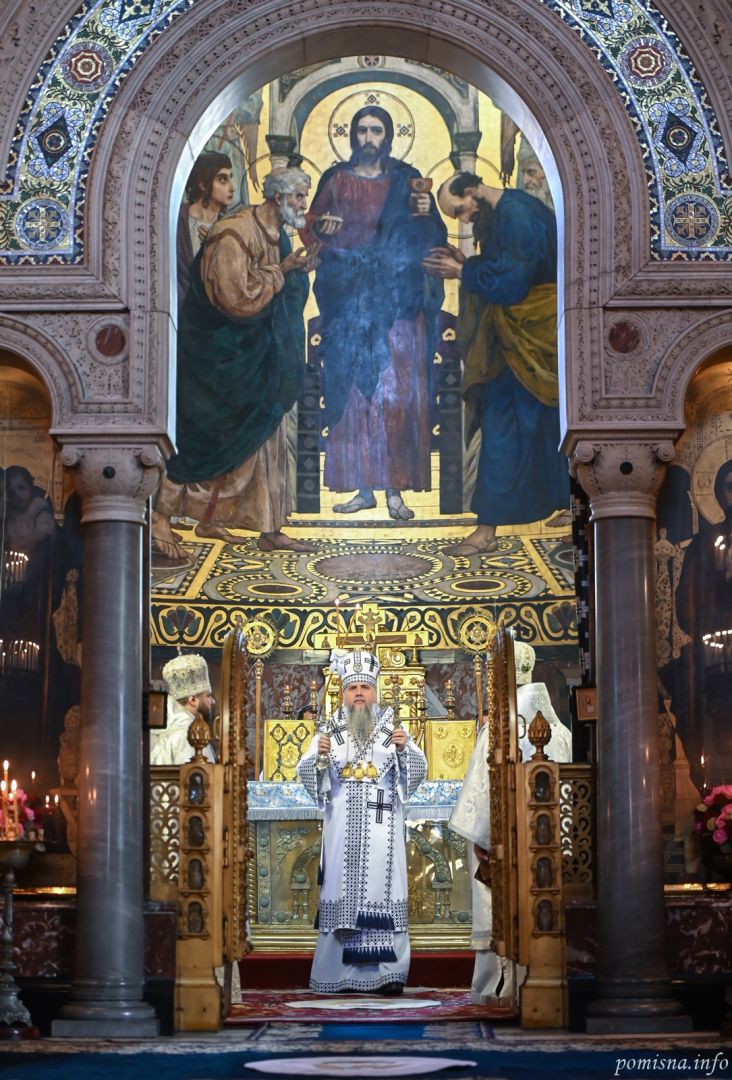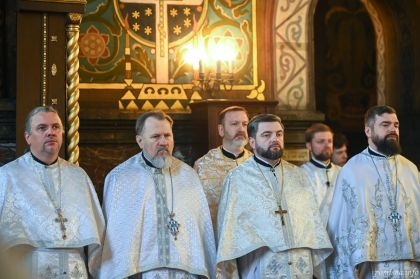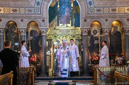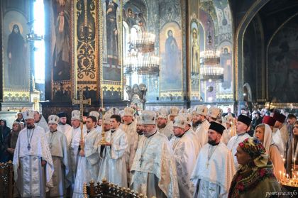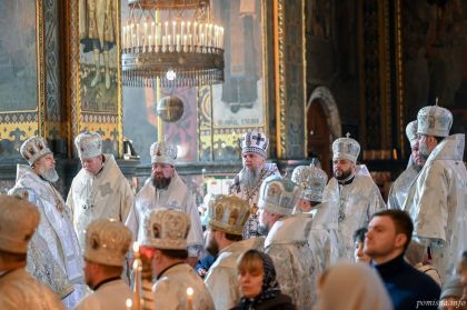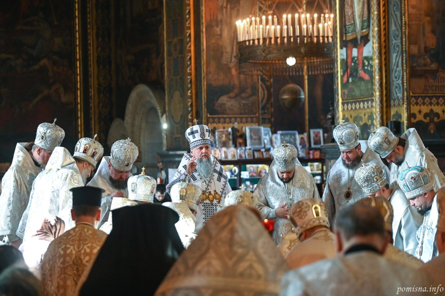 Предстоятелю Православної Церкви України співслужили митрополит Львівський і Сокальський Димитрій, митрополит Рівненський і Острозький Іларіон, митрополит Білоцерківський Євстратій, митрополит Дніпровський і Січеславський Симеон, архієпископ Луганський і Старобільський Лаврентій, архієпископ Житомирський і Поліський Володимир, архієпископ Тернопільський і Бучацький Тихон, архієпископ Вишгородський Агапіт, єпископ Запорізький і Мелітопольський Фотій, єпископ Житомирський і Овруцький Паїсій, єпископ Васильківський Єфрем, єпископ Богуславський Арсеній, єпископ Бориспільський Авраамій, настоятель – протоієрей Борис Табачек і клірики собору та численне запрошене духовенство.