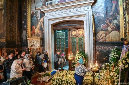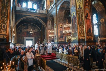 У дев’ятий день упокоєння Святійшого Патріарха Філарета, 28 березня 2026 року, Блаженнійший Митрополит Київський і всієї України Епіфаній очолив заупокійну Божественну літургію за Його Святістю у Володимирському соборі столиці.