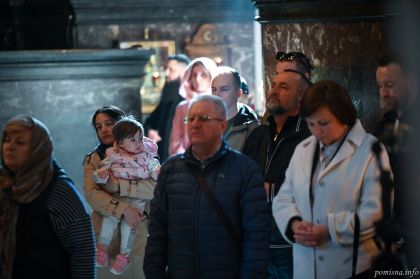 Також під час відправи лунали молитовні прохання за воїнів, які захищають Україну, за владу і наш народ, за спокій душ усіх полеглих оборонців Батьківщини і мирних жителів, які загинули під час війни, та за новопреставленого Патріарха Філарета.